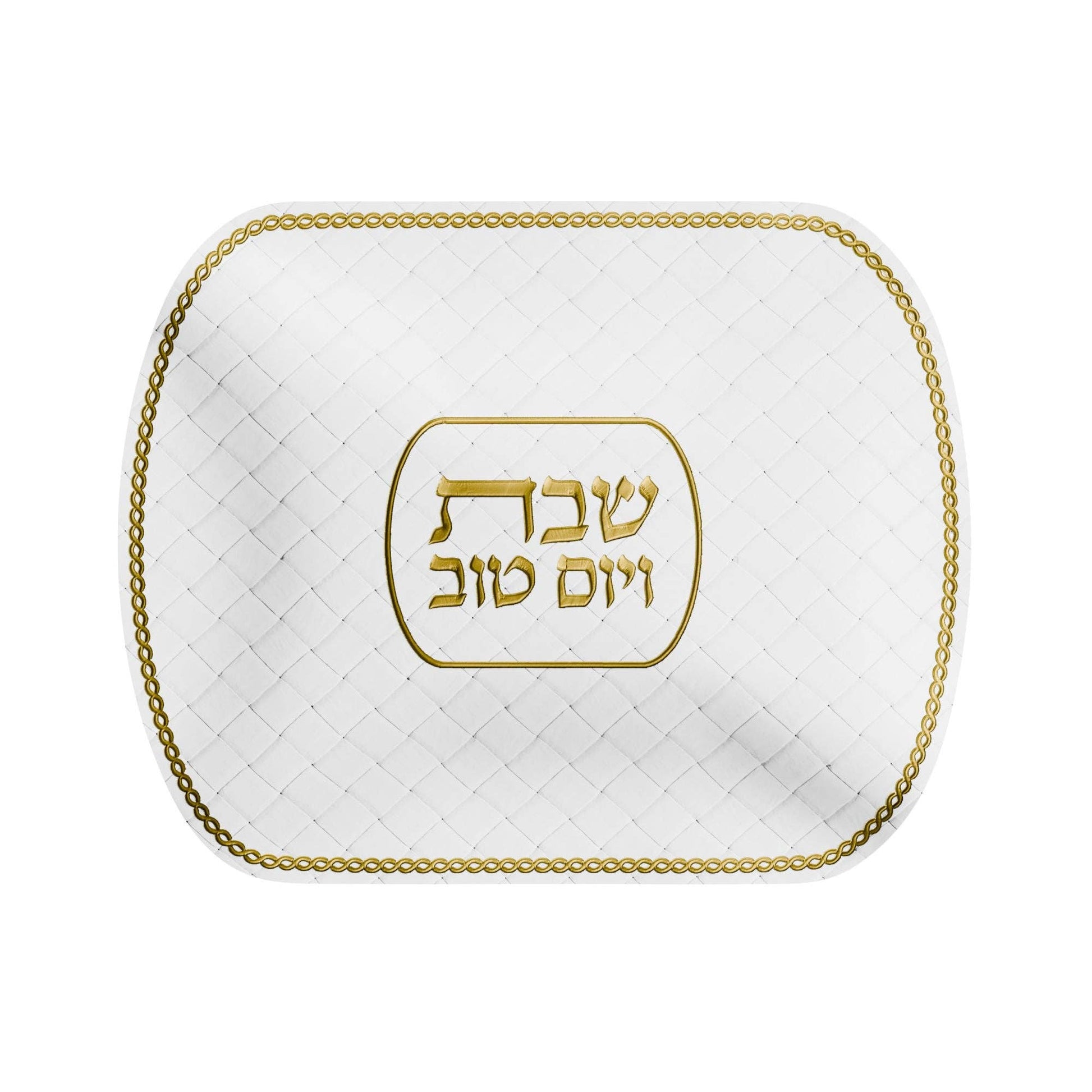 A stunning Woven leather Challah Cover embossed with a delicately emrbroidered title and border. A welcome addition to your Shabbos table. Available in Gold or Silver and uxuriously embroidered for that perfect finish, this is sure to make a welcome addition to your Shabbos or Yom Tov table.