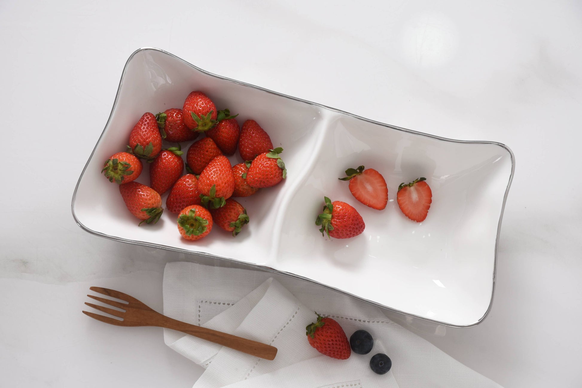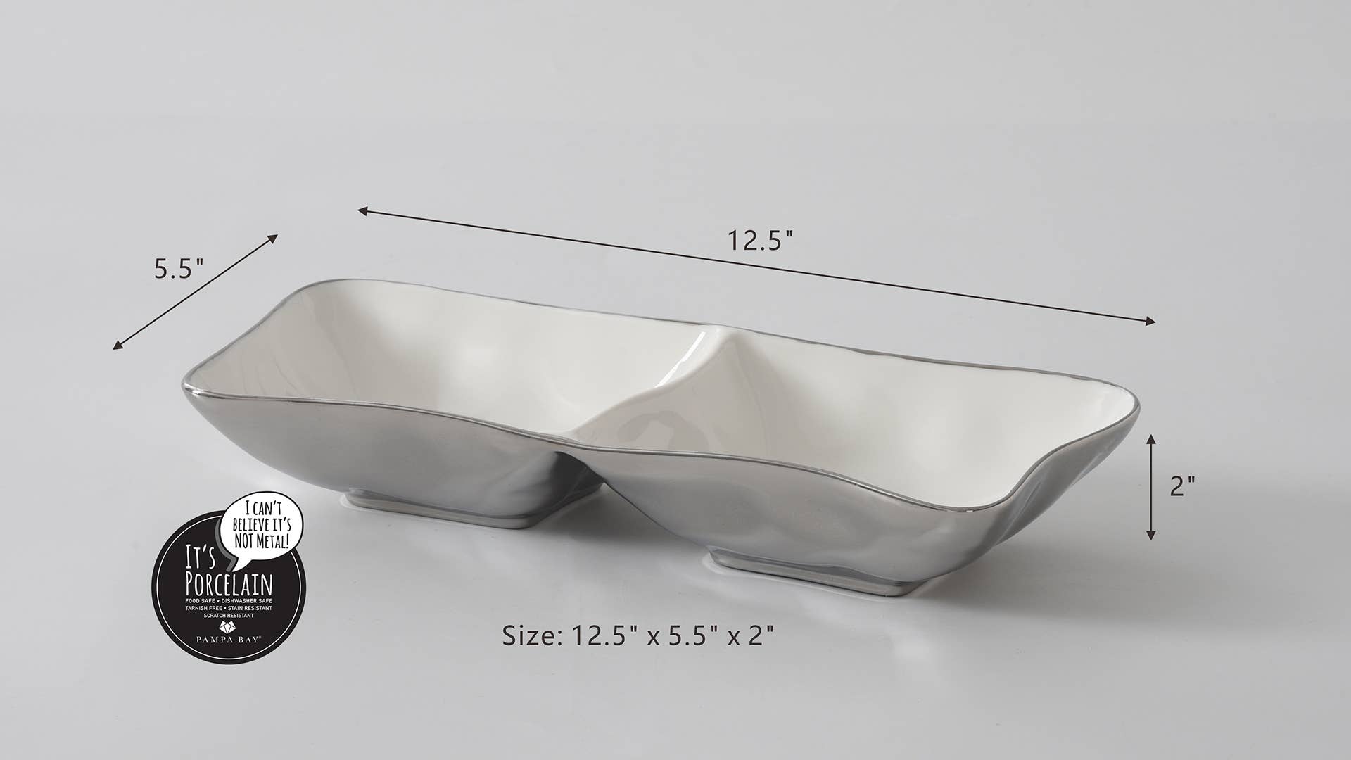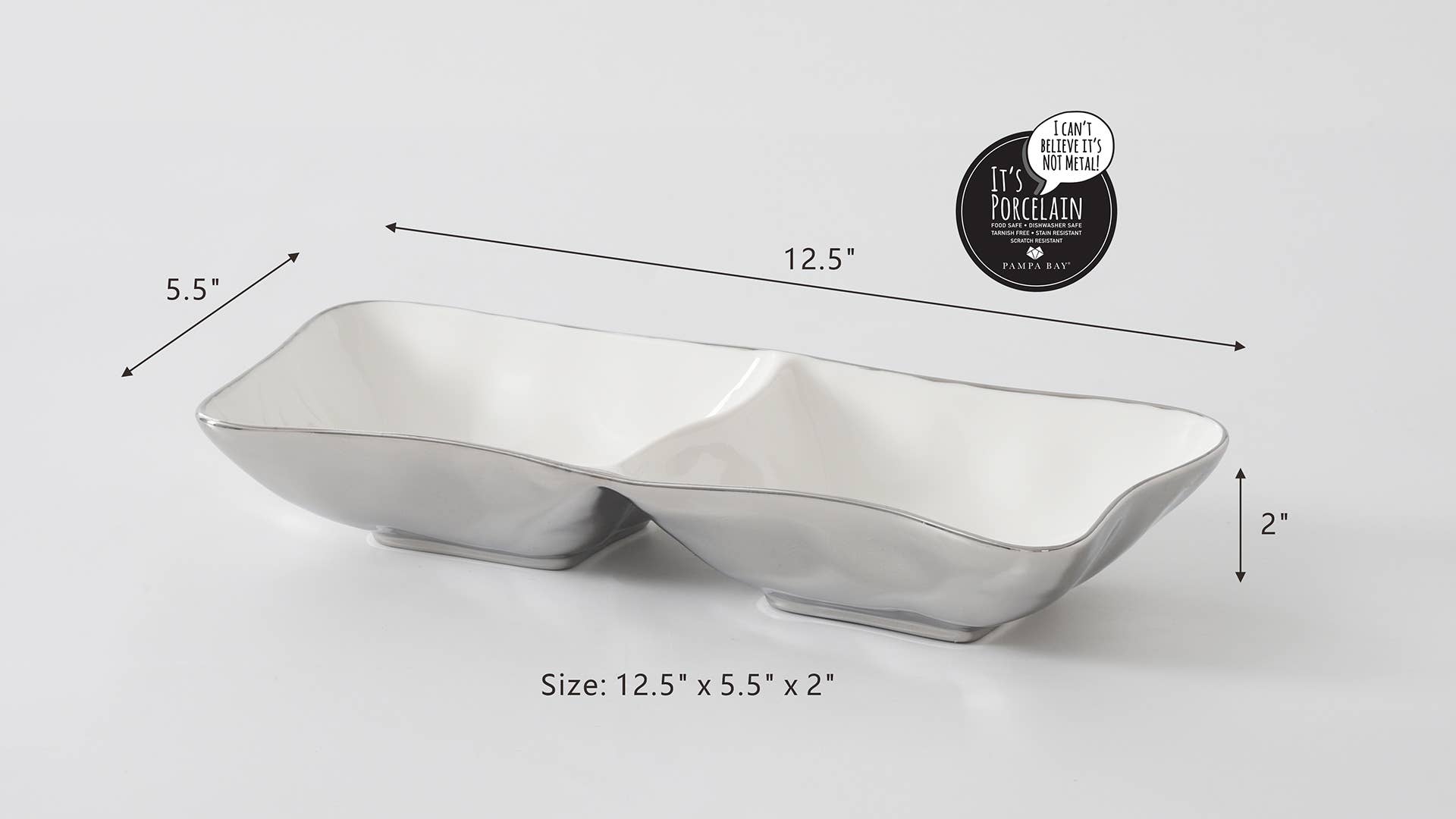 Great for serving appetizers, desserts and sides! Serve chips and dip, an assortment of cookies or a duo of vegetables. This server also makes for a perfect nut and/or candy dish for any countertop!