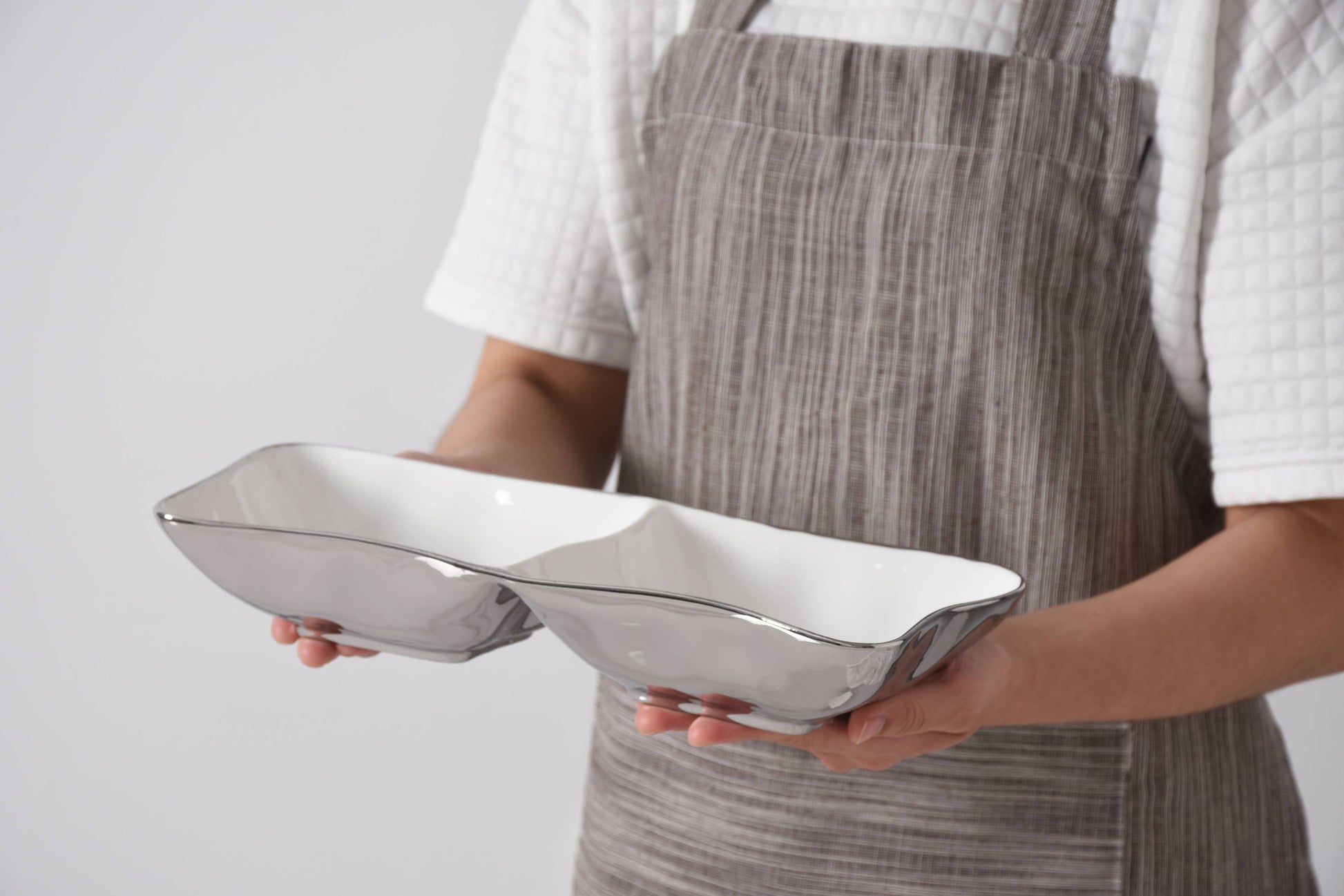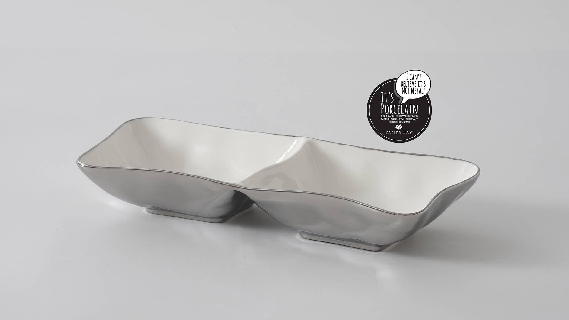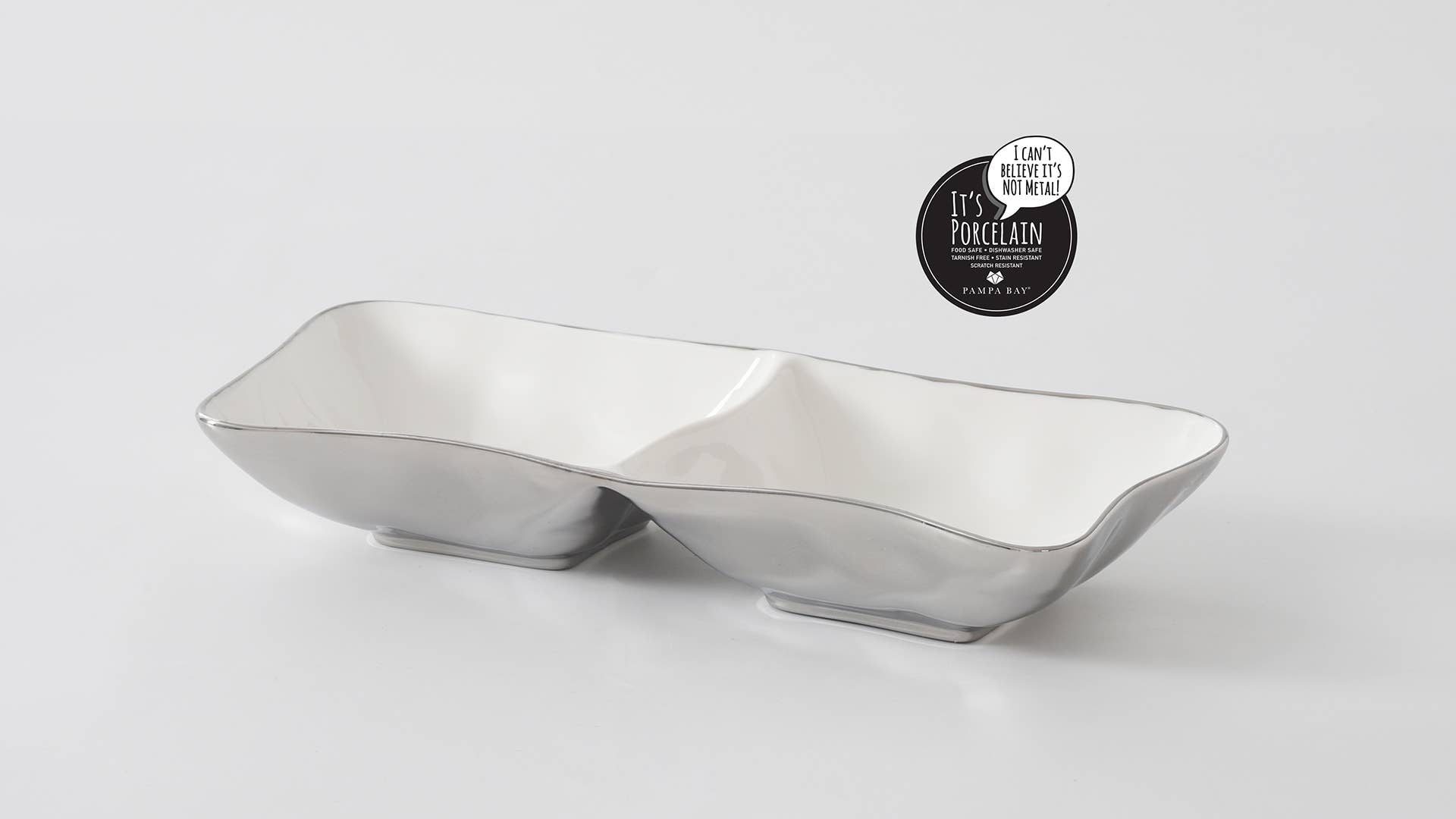 Crafted in a luxurious white high-fired porcelain and dazzling silver titanium.