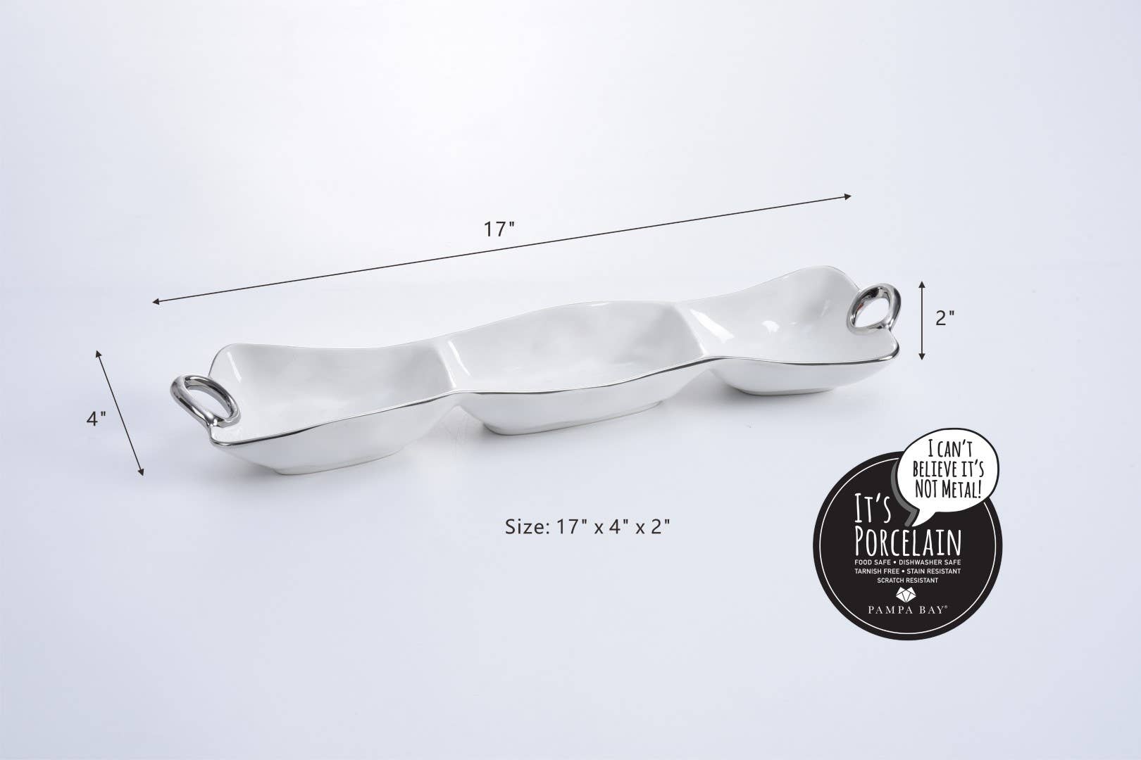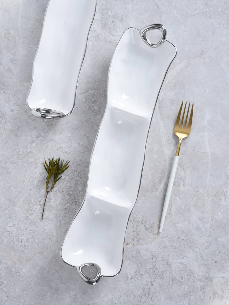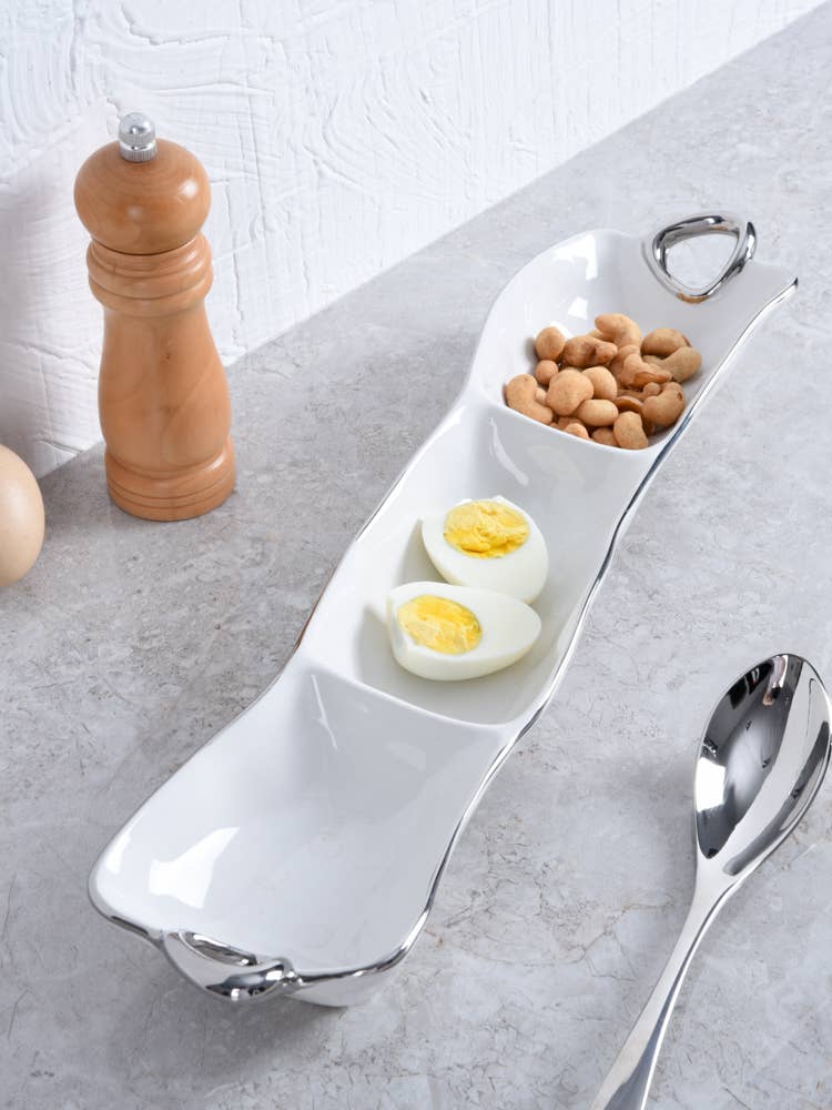 This piece is great for serving different combinations of munchies, dips and vegetables or all your Taco Night needs like guacamole, sour cream and pico de gallo.