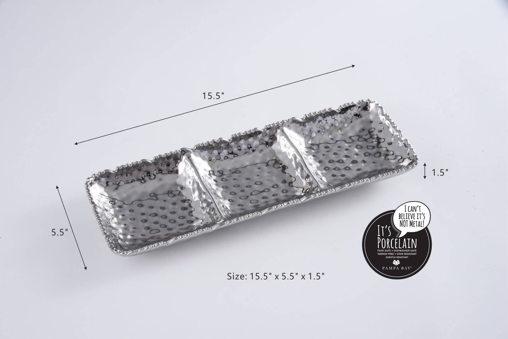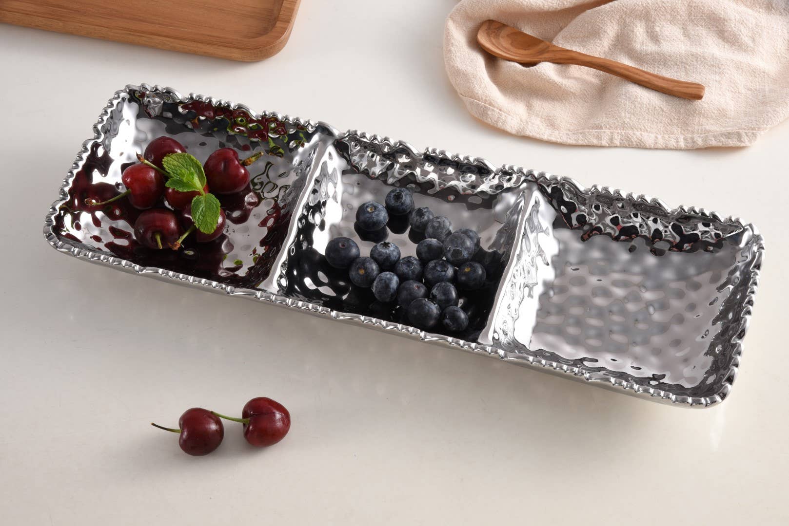 Get creative! This piece is great for serving different combinations of munchies, dips, and vegetables or all your Tex-Mex needs like guacamole, sour cream and pico de gallo.