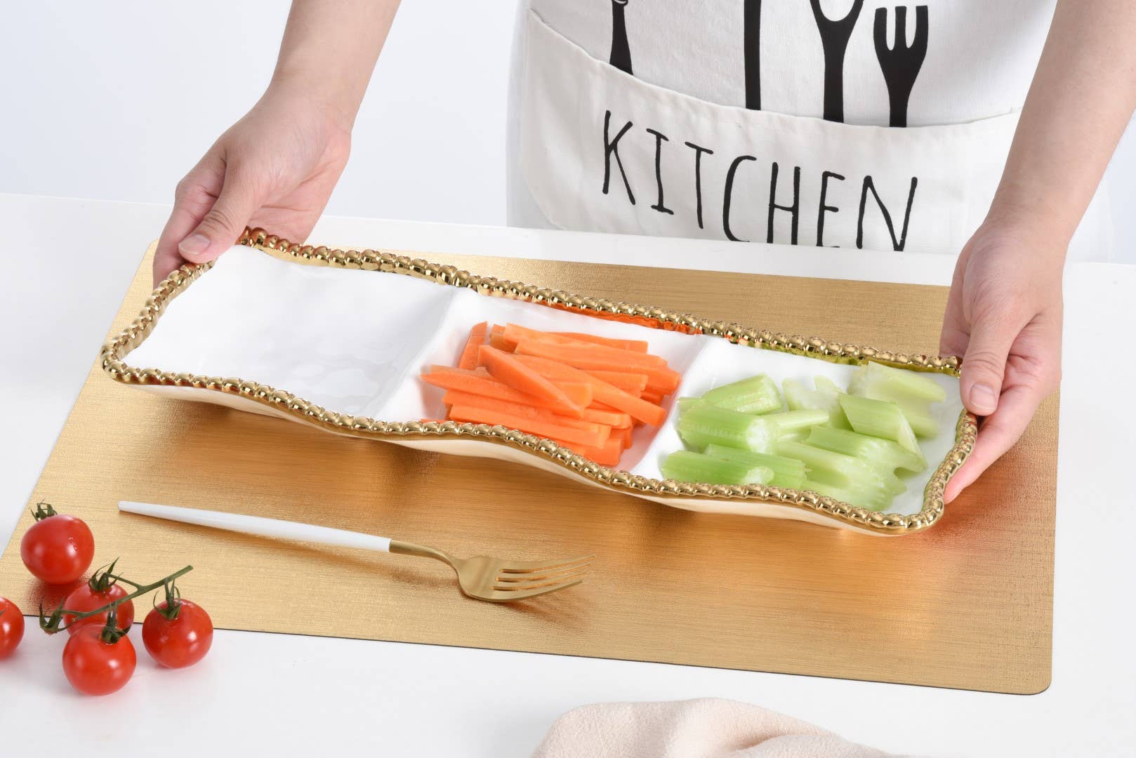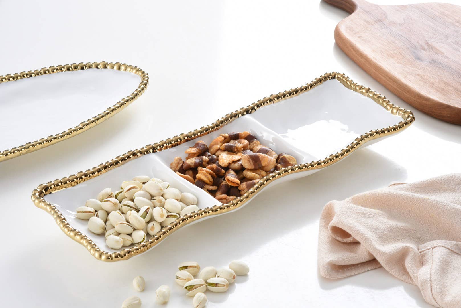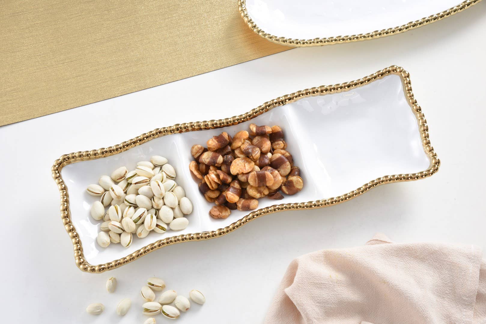 Rectangular 3-section serving piece from the Golden Salerno Collection.