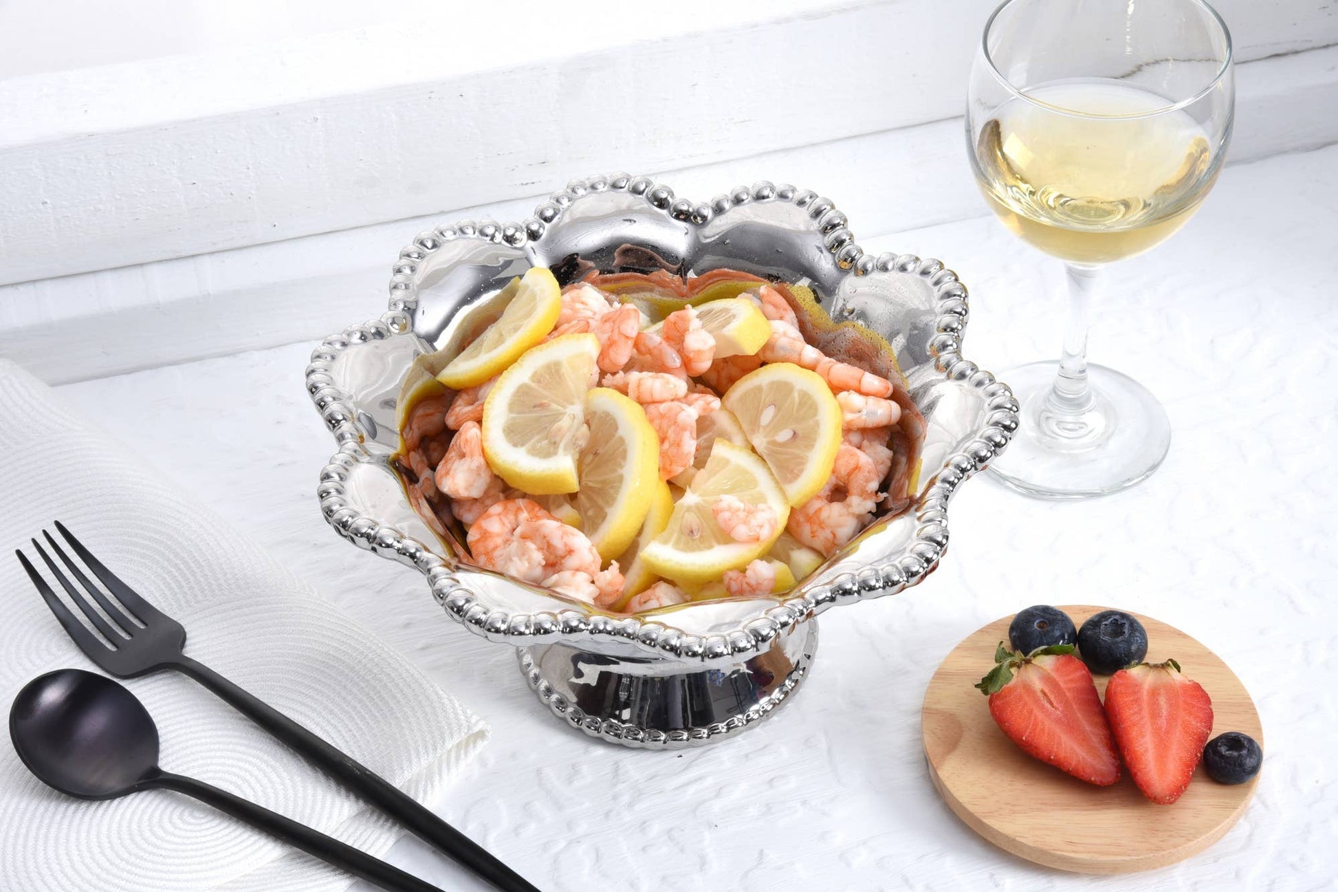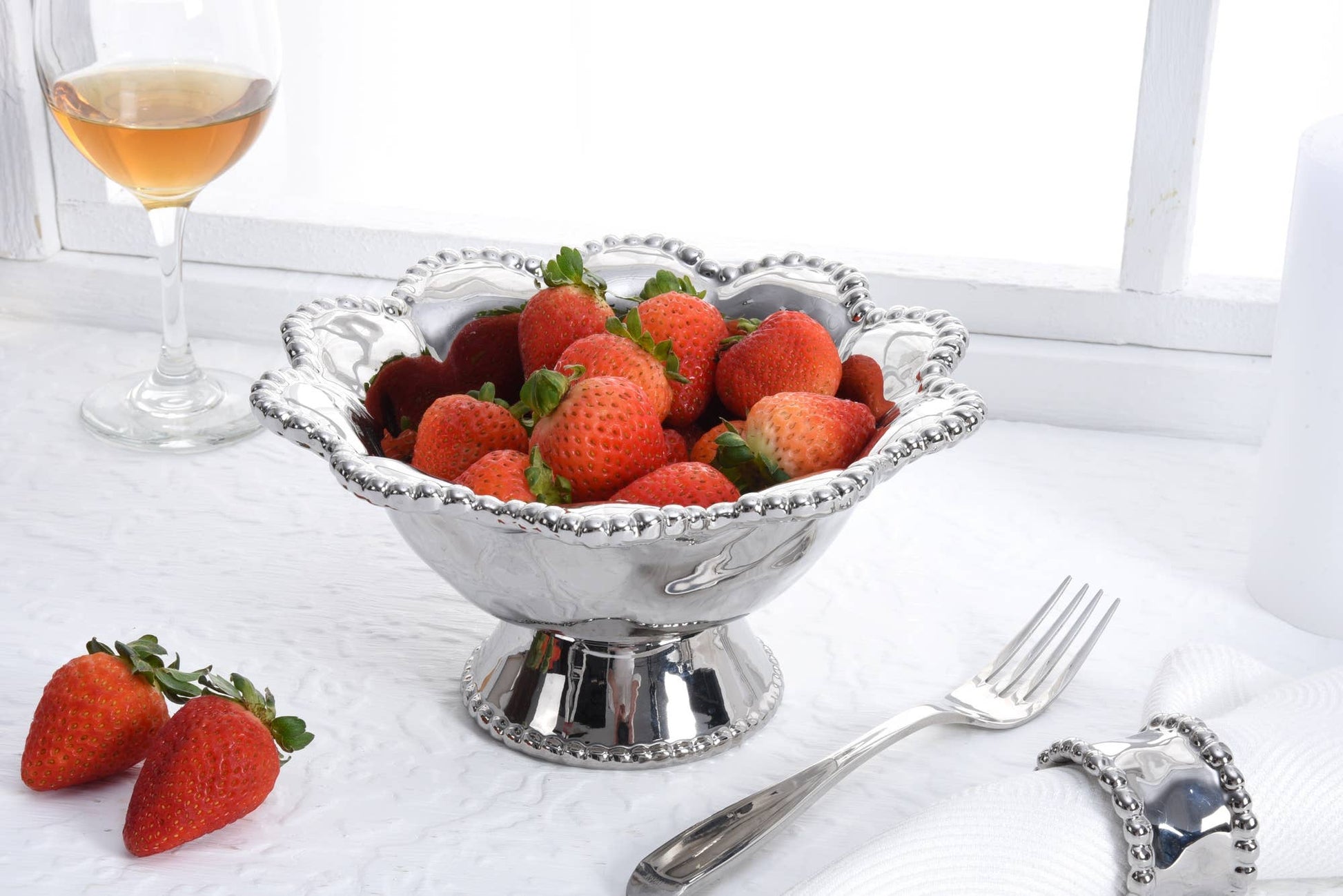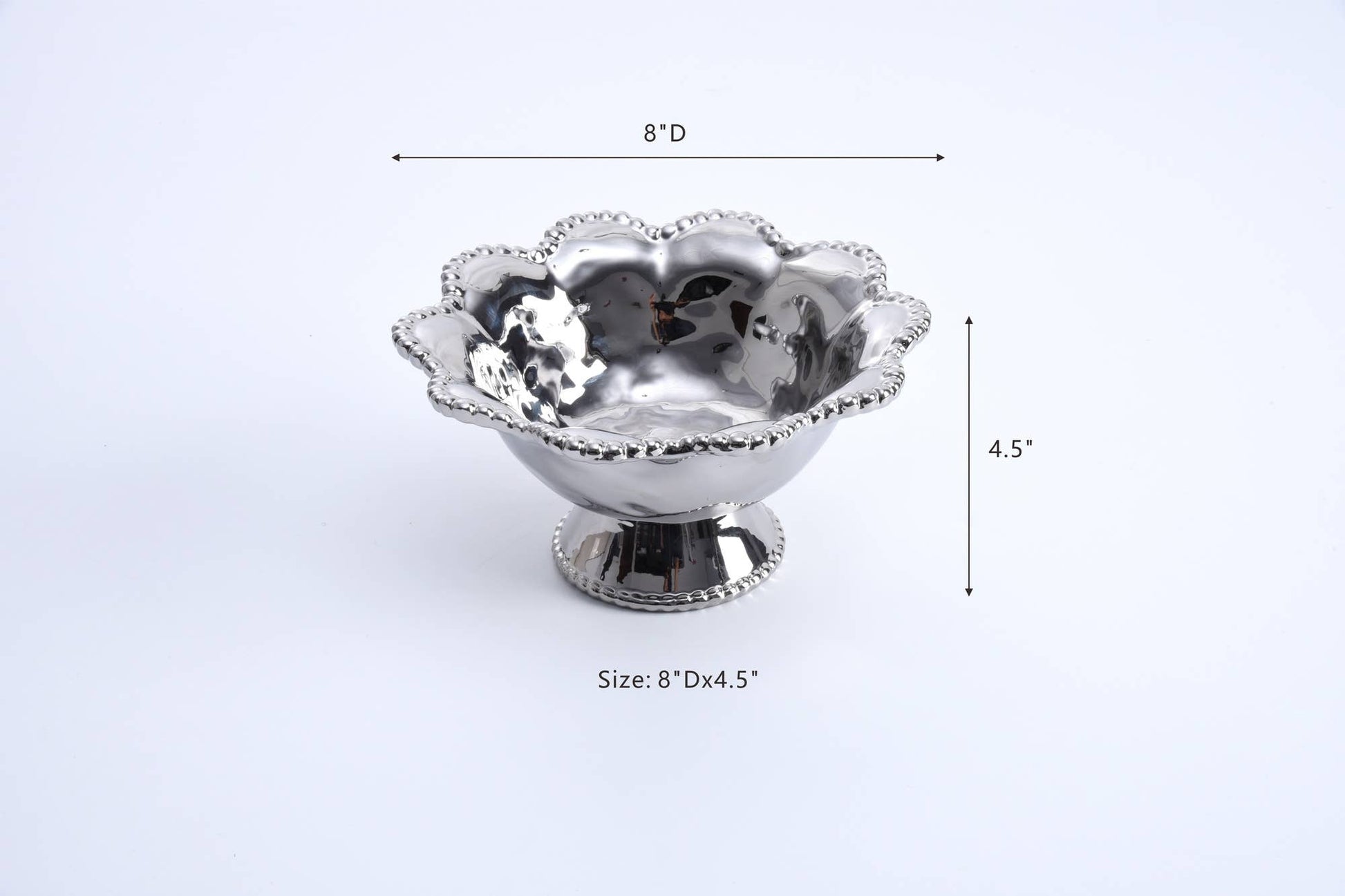 A true statement piece, this bowl makes a great center piece, fruit bowl or snack bowl. Striking and elegant titanium finished high-fired porcelain.