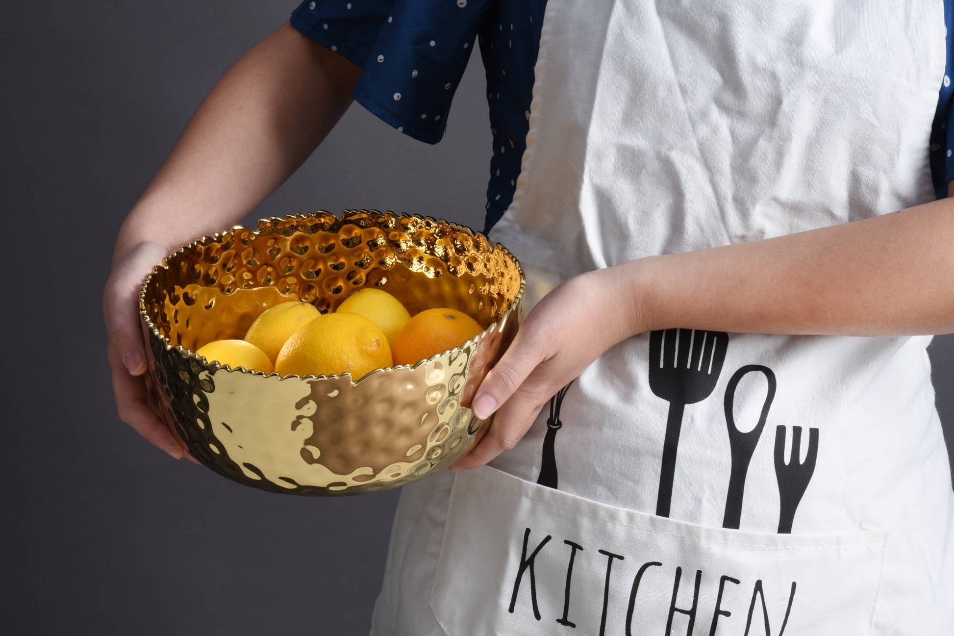 Striking and elegant golden tone titanium finished high-fired porcelain.