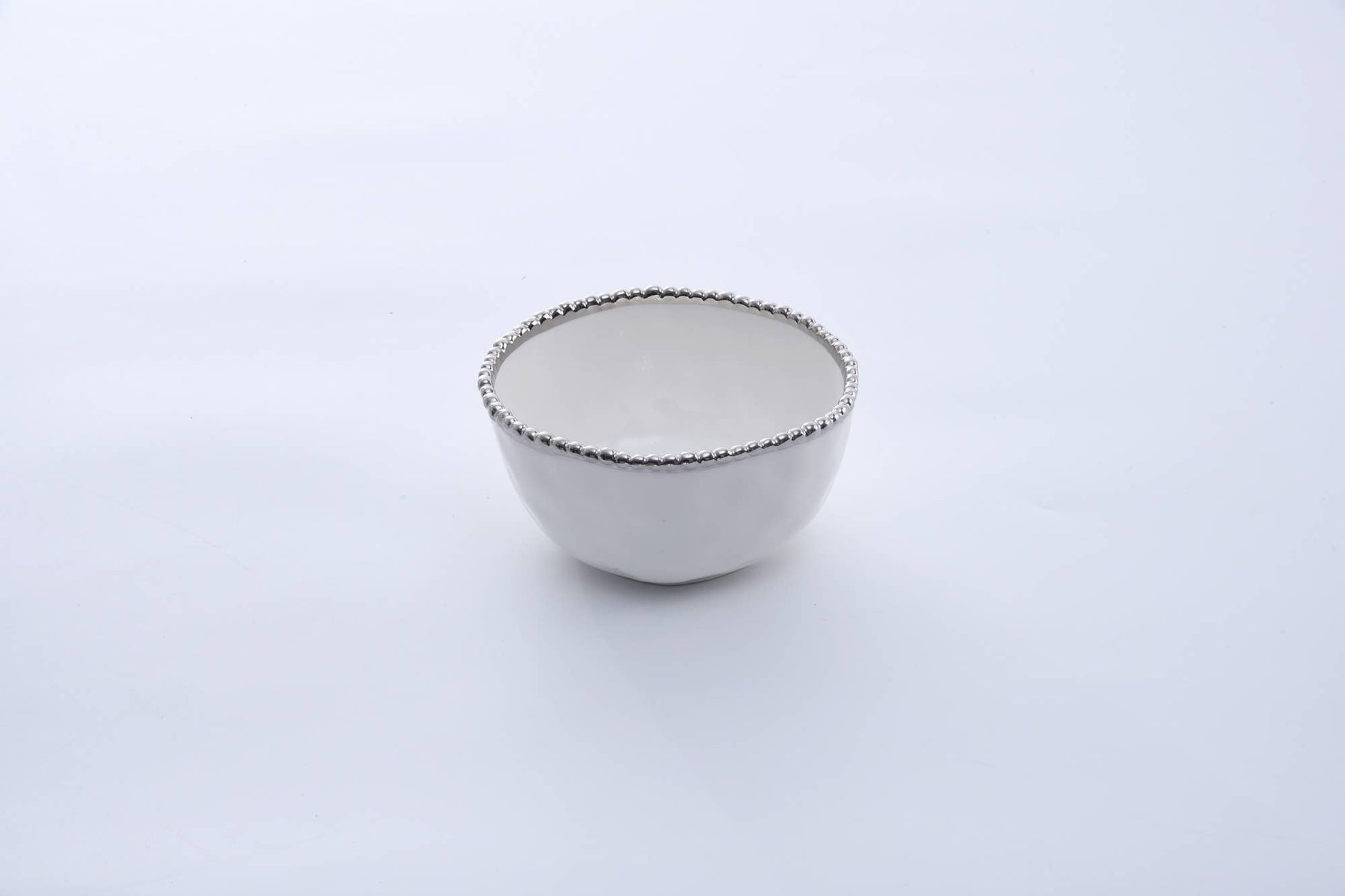Each bowl has a slim band of silver titanium beads against a gleaming white porcelain body adding understated elegance to any table. Great for fancy dinners or everyday meals. Elevate every breakfast by serving cereal or yogurt in this beautiful bowl! Or place one at every place setting for soup or salad at dinner.
