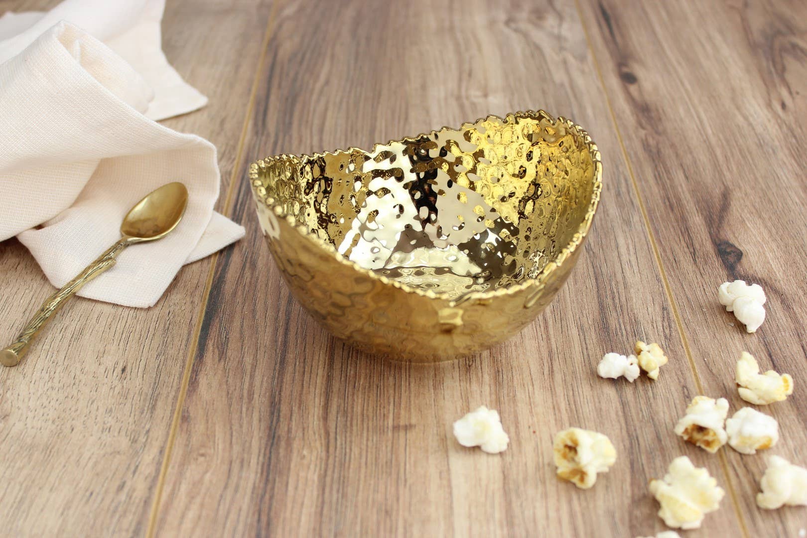 Add elegance to your mashed potatoes, veggies, or macaroni salad. Striking and elegant golden titanium finished high-fired porcelain.