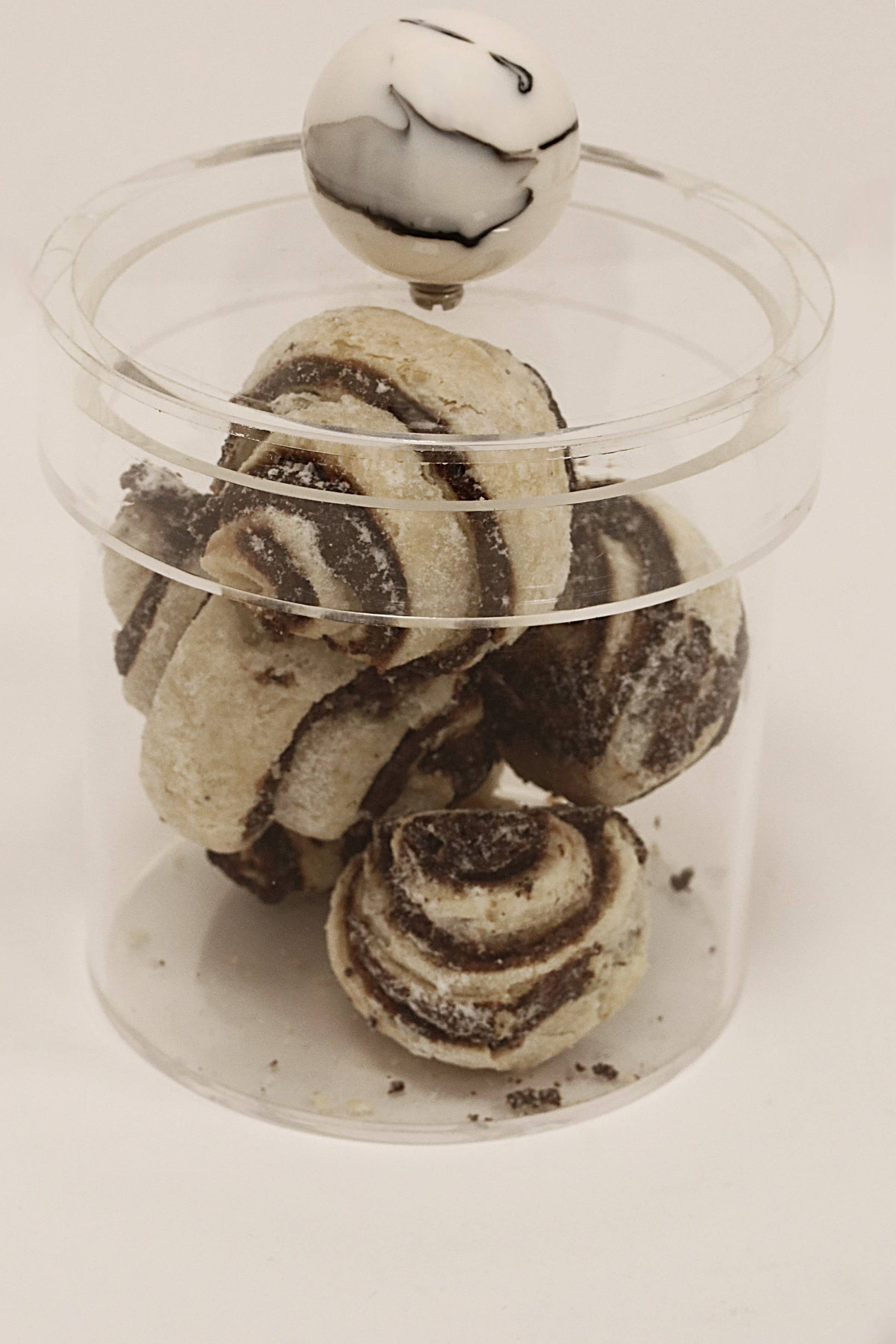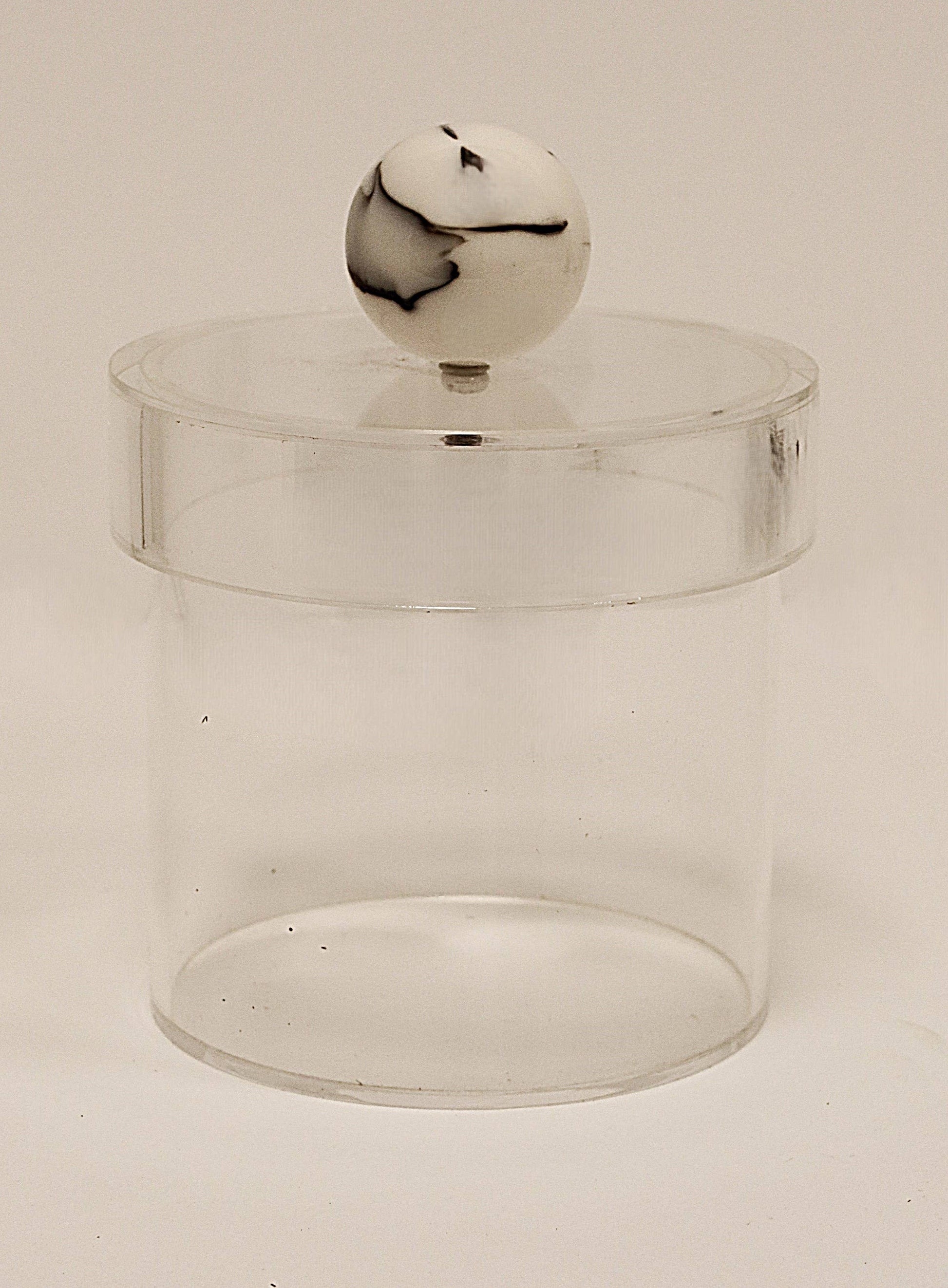 This acrylic canister, available in 3 sizes, is the perfect storage solution for your kitchen or bathroom. The ball knob adds a touch of modern elegance, while the acrylic material keeps your items visible and protected. Choose from small, medium, or large to suit your storage needs.